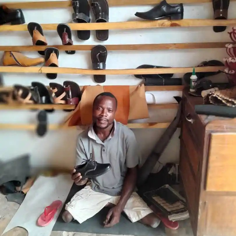 Now, a few years later, Richard is very well-known for his shoemaking skills. People from all around Mwanza come to buy shoes at his very own store. He makes beautiful hand-made leather shoes. But that’s not all. Richard dedicates all his free time to advocate for the rights of people with a disability in Tanzania.